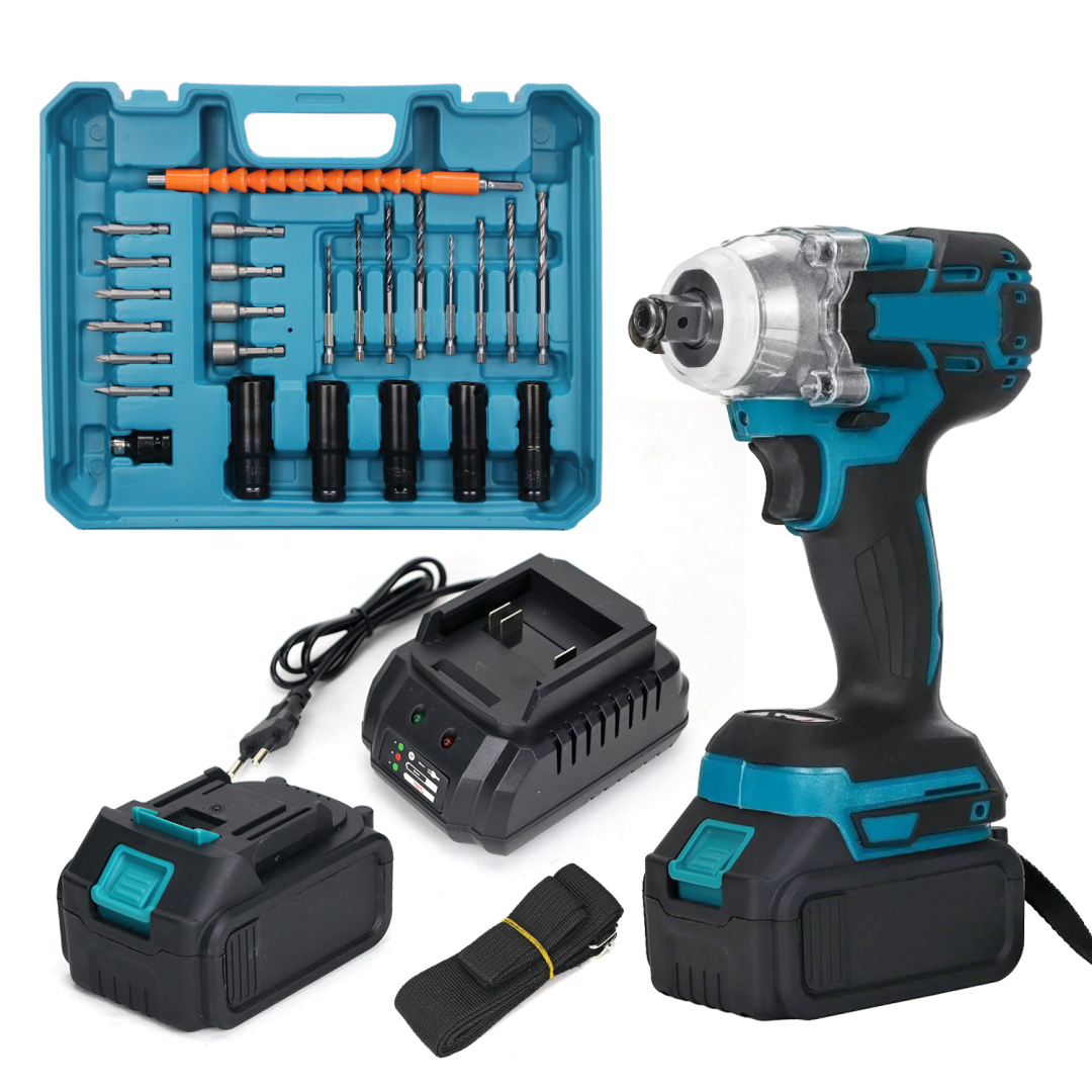 Гайковерт акумуляторний безщітковий 36V 5Ah 300Nm з набором інструментів та 2 АКБ, фото 1