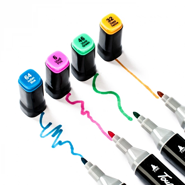 Маркери Touch відрізняються високою якістю виконання та ергономічним дизайном. Завдяки чіткому маркуванню на ковпачках ви завжди швидко знайдете потрібний відтінок. Насиченість кольору трохи вища, ніж на ковпачку — це робить малюнки яскравими та виразними.