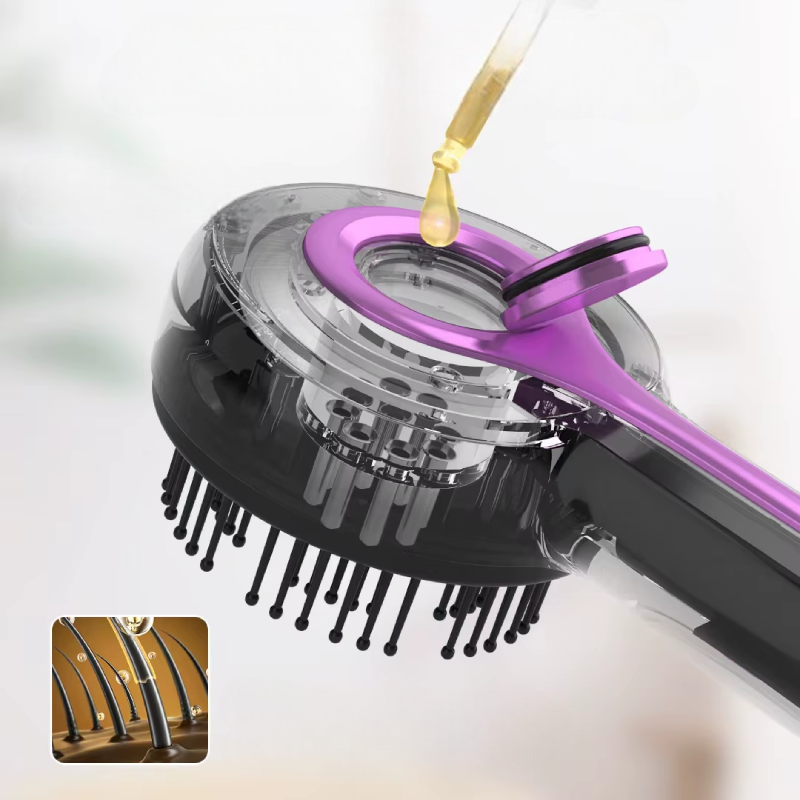 • Аплікатор для ефірних олій: вбудований резервуар (3 мл) дозволяє рівномірно розподіляти масло по шкірі голови, покращуючи вбирання та догляд.