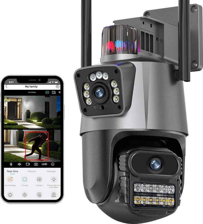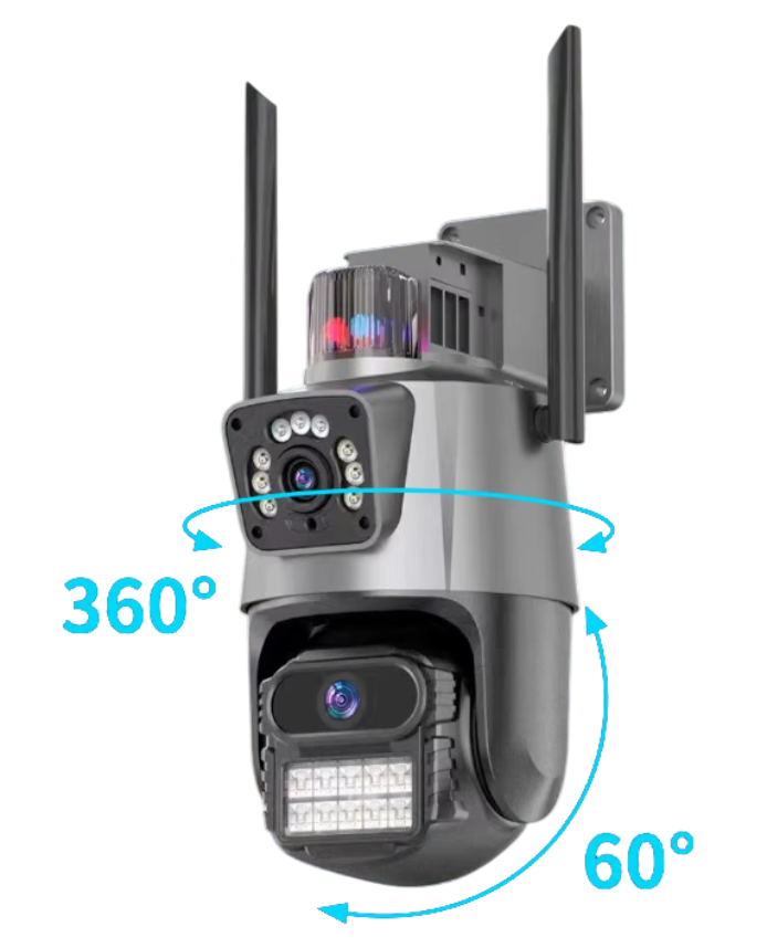 Вулична поворотна камера V380-V21 8MP (4G) — сучасне рішення для цілодобового відеоспостереження без підключення до Wi-Fi. Працює з SIM-картою мобільного оператора, що забезпечує стабільну передачу даних та доступ до камери з будь-якої точки, де є мобільний зв'язок. Висока роздільна здатність 8MP гарантує деталізоване зображення, а поворотна конструкція з кутом огляду 360° дозволяє контролювати всю територію довкола.